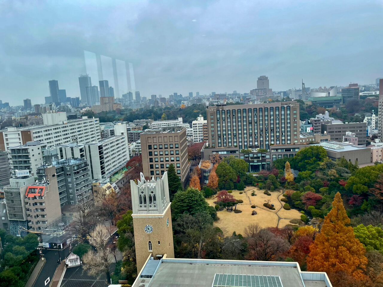 15階「森の風」の窓からの大隈講堂と大隈庭園です。